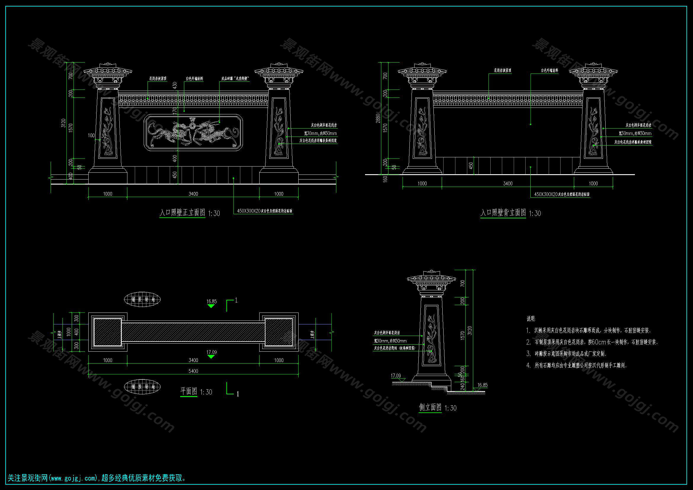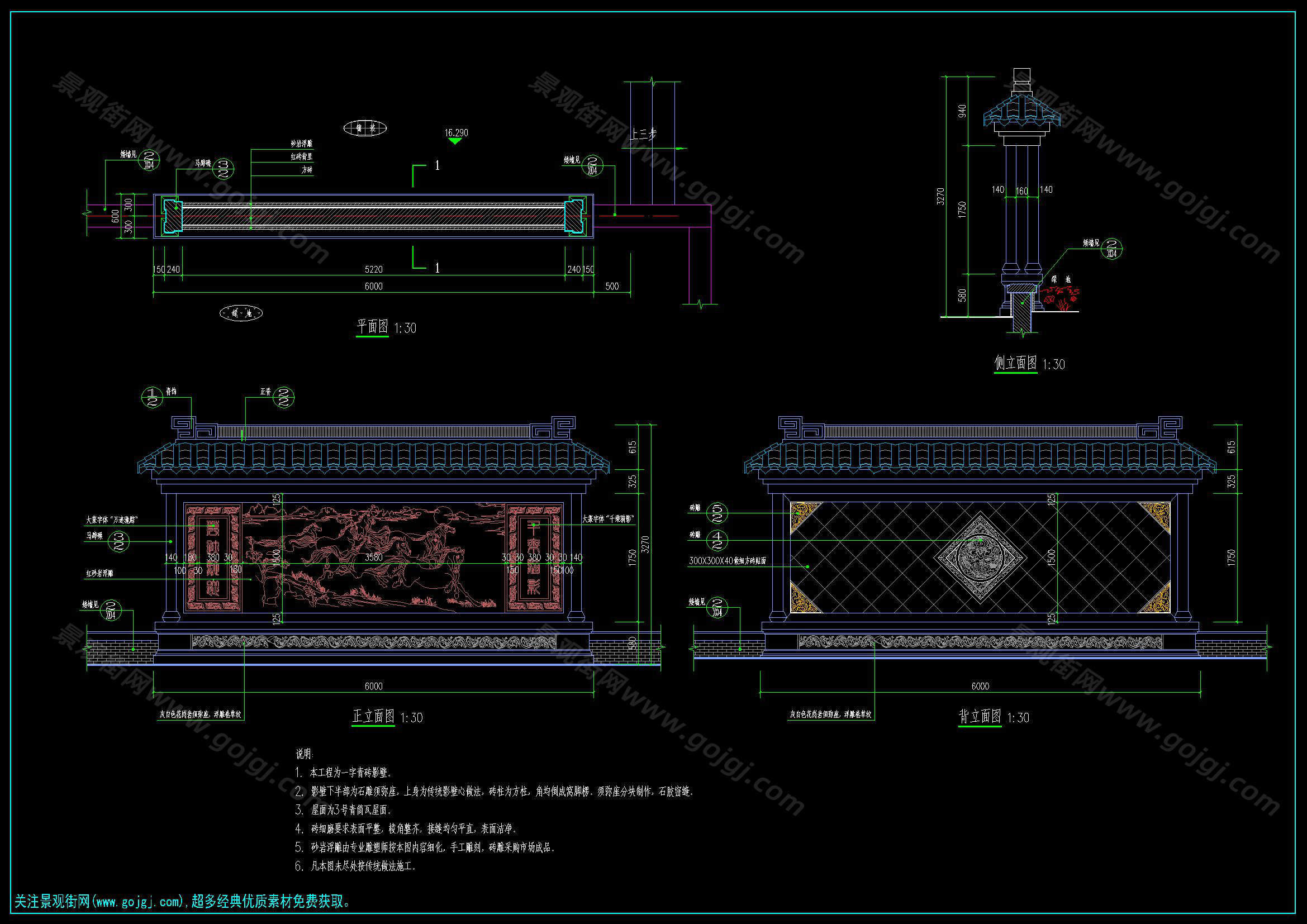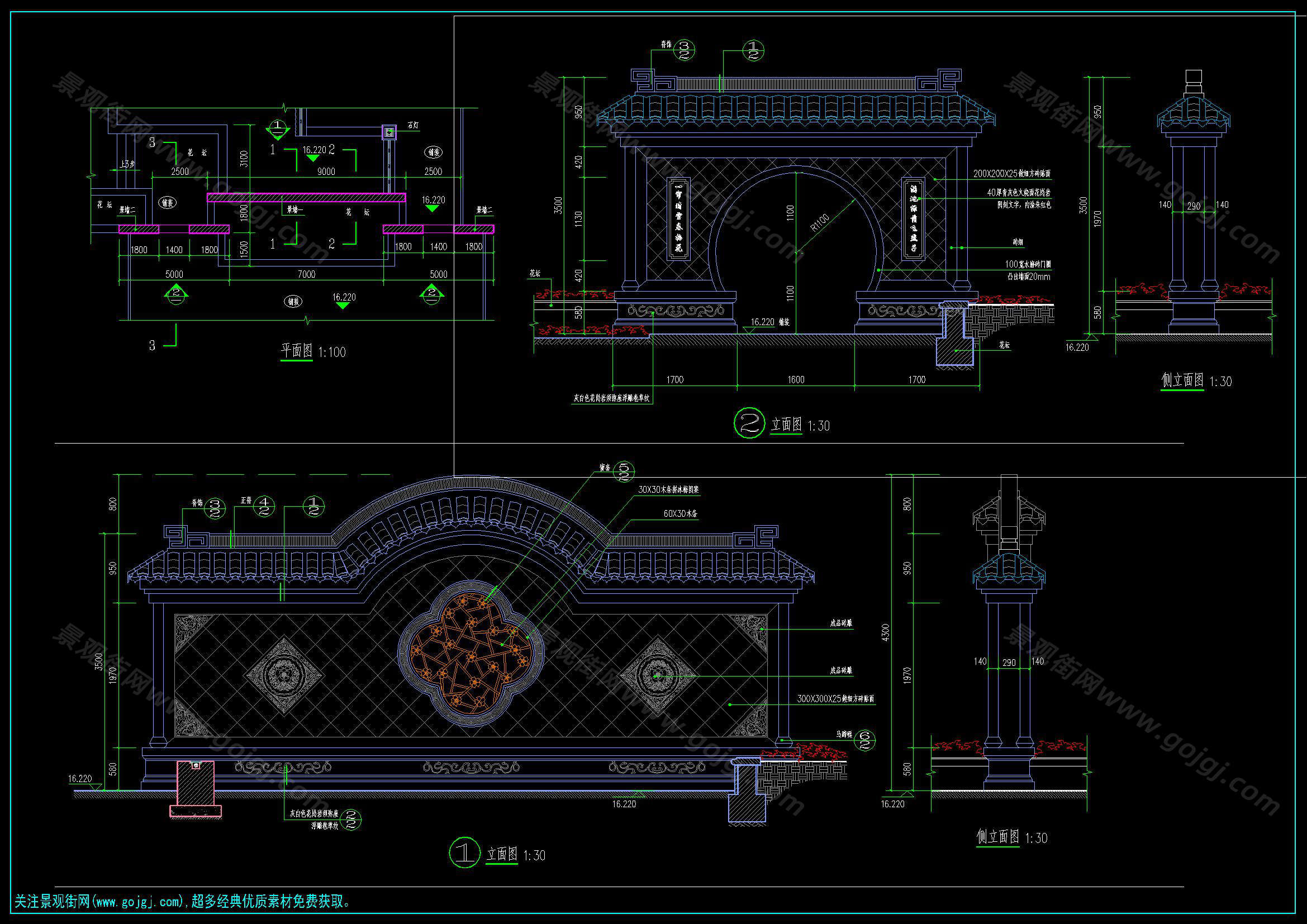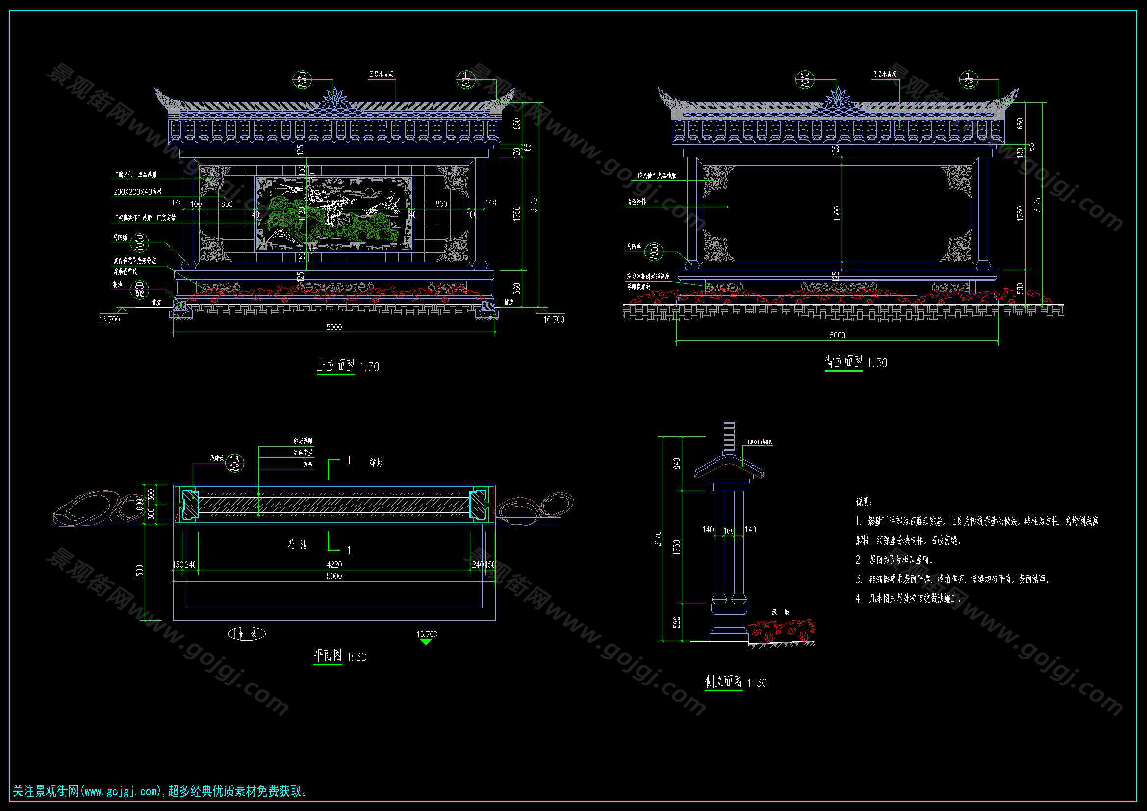中式传统古典景墙施工图合集