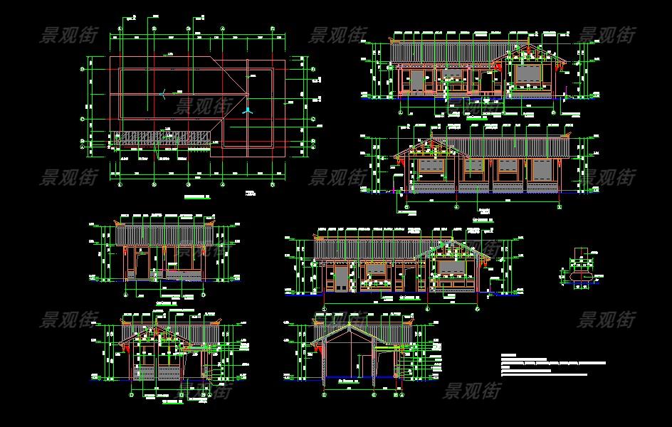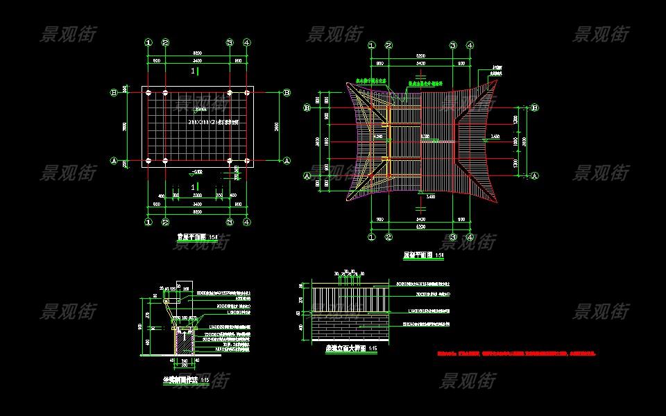 单体合集-经典茅草亭施工图10套