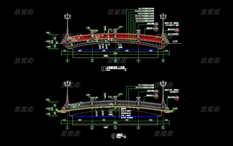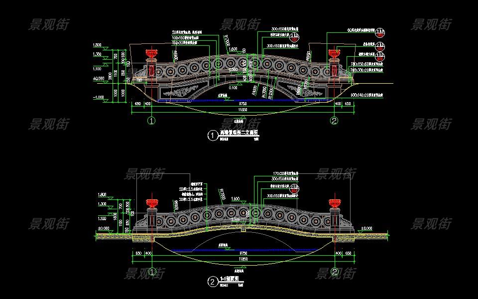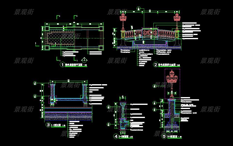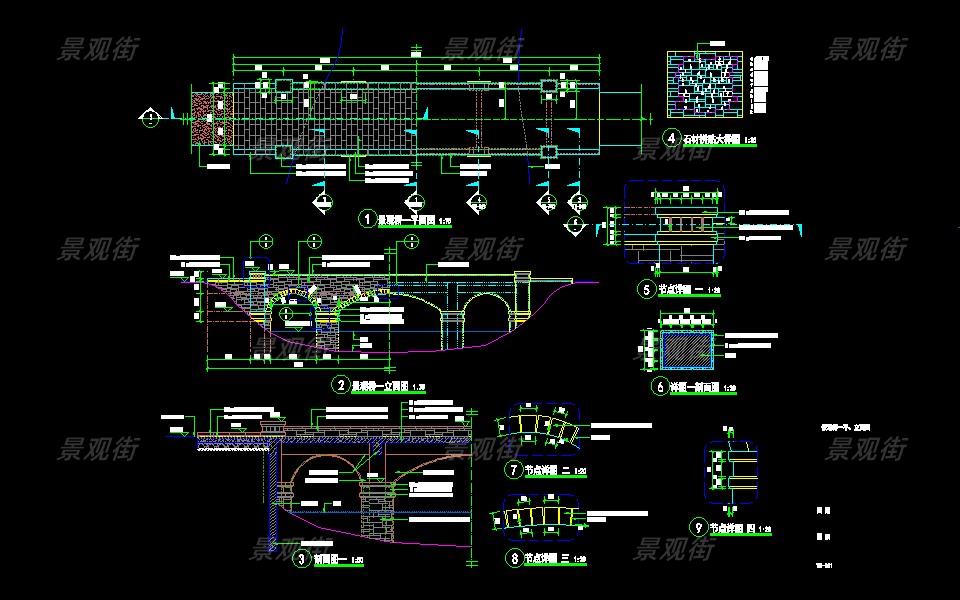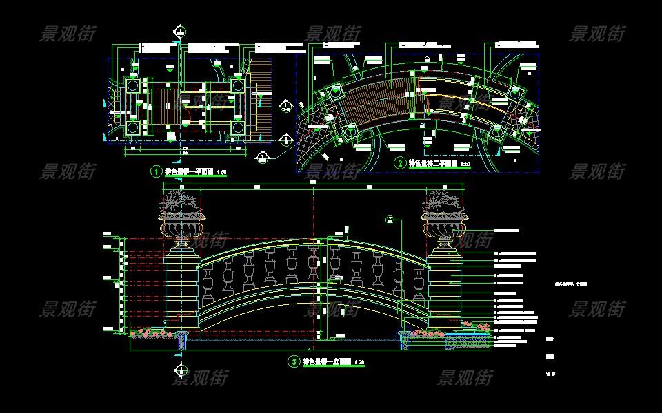 下载素材:单体合集-欧式景桥施工图10套