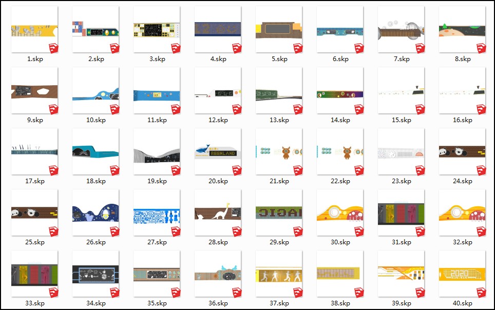 下载素材:SU合集-儿童活动区景墙模型40套