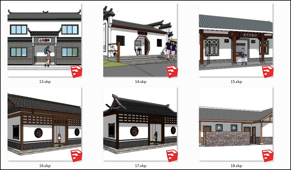 下载素材:SU合集-中式风格卫生间模型18套