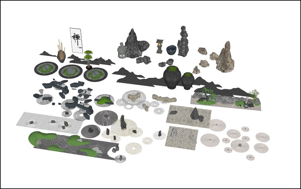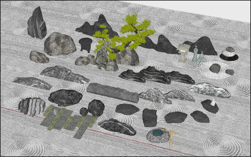 下载素材:SU合集-禅意景石模型