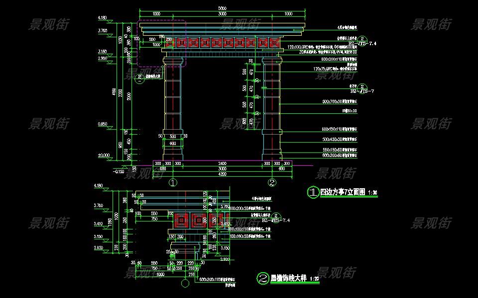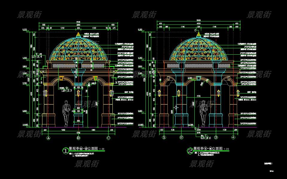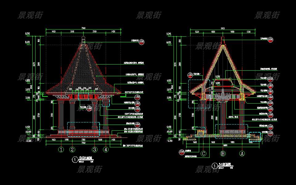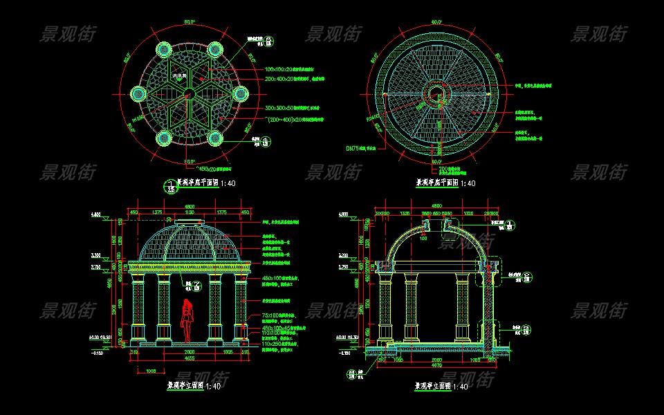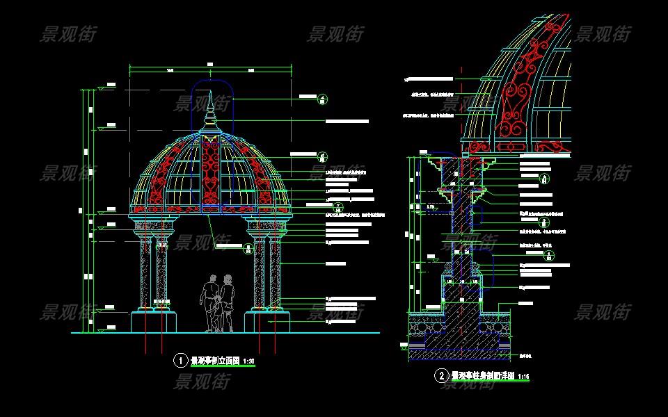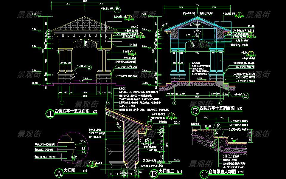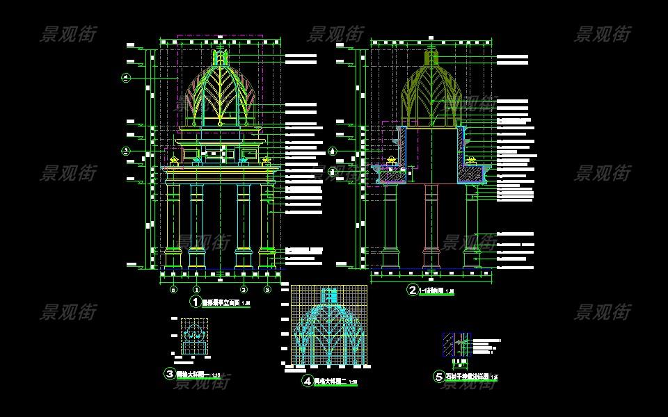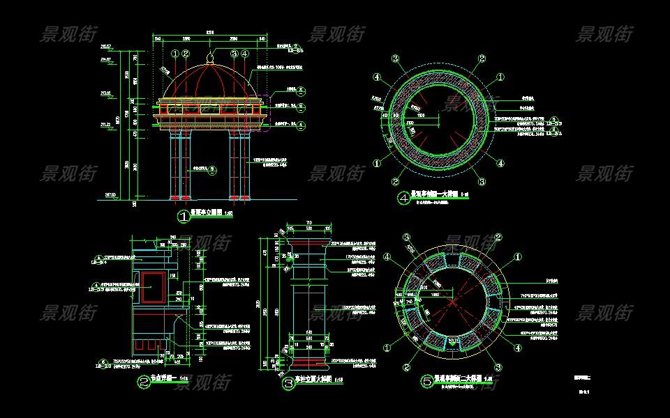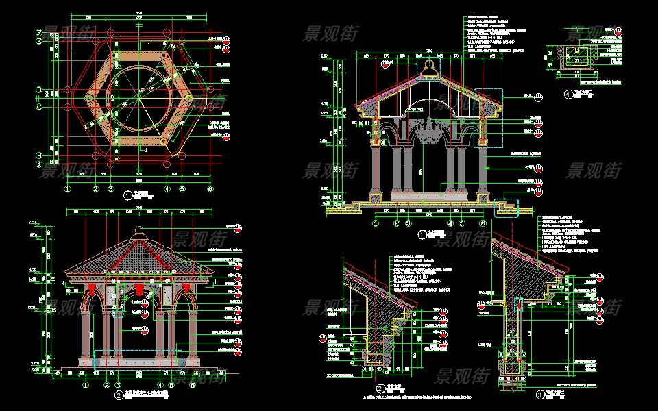 下载素材:单体合集-欧式简约亭施工图10套