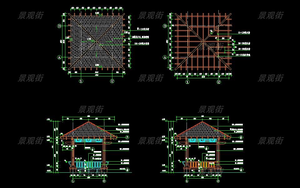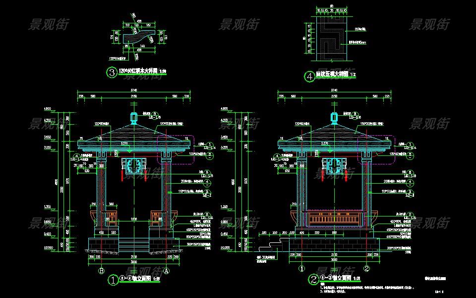 下载素材:单体合集-传统木亭子施工图10套